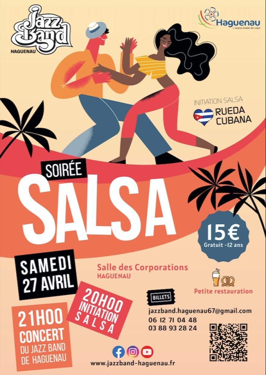 Le Jazzband de Haguenau composé de 18 musiciens organise ce samedi 27 avril une soirée salsa à la salle des Corporations. Avant le concert, à 20h, un cours de danse gratuit sera proposé. Après ce bon échauffement pour le public, à 21h, le Jazzband proposera un concert jusqu'à 23h. Hugo Hernandez, directeur du Jazz Band, nous apporte des précisions.